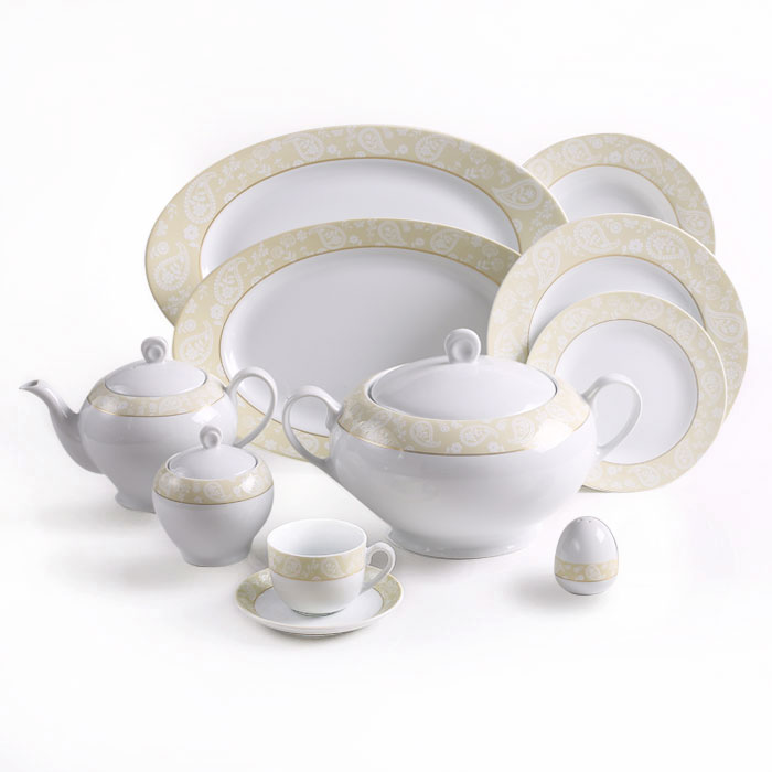 ویژگی های سرویس چینی زرین طرح نورا طلایی 102 پارچه: